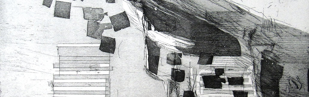Der Druckgrafik gilt meine Leidenschaft. Infiziert wurde ich 1993 mit der Technik des Siebdruckes und der Möglichkeit Bilder aus farbigen Schichten aufzubauen. Ab 2003 kam der experimentelle Tiefdruck – die Radierung als Ausdrucksweise dazu. Nicht die Vervielfältigung und die Umsetzung eines fertigen Bildes sind mein Thema, sondern das unfertig Offene, der Farbrausch, die spielerische Freude am Tun. Ich improvisiere direkt beim Drucken, male auf die Platten, ändere Reihenfolgen, Farben und Orte der verschiedenen Schichten, Platten und Siebe. Auch das Material des Druckstockes ist variabel – Kunststoffe, Tetrapacks, Kupfer und Zink. Formen, Farben und Linien sind mir wichtige Elemente. Der Tetrapackdruck ist z.B. bestimmt durch den Rhythmus den die Kanten der Safttüte vorgeben und den einzigartigen Plattenton der sich beim Druck ergibt. Ich zerlege Gefundenes, Gesehenes und Skizziertes in Schichten und kombiniere es wieder zu abstrakten Kompositionen – zu imaginären Räumen und abstrakten Landschaften.